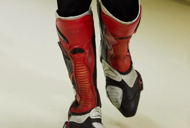 Ahora a esas botas; esas botas de motocross grandes, puntiagudas y desgastadas.